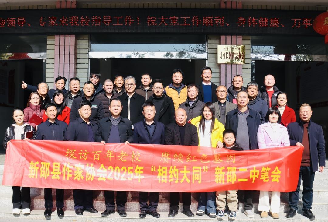 1月5日,为进一步繁荣发展新邵校园文化,提升文学爱好者创作水平,激发大家创作出一批有温度、有深度、有力度的文学作品,新邵县作家协会组织会员代表走进新邵县第二中学,开展“探访百年老校 赓续红色基因”创作笔会活动。县人大常委会副主任石争光、市作协主席周伟、市文联兼职副主席谢卫民、新邵县委宣传部常务副部长钟晖等应邀参加活动。