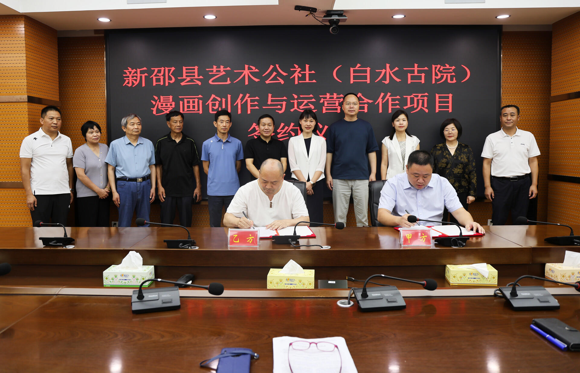 7月1日,新邵县艺术公社(白水古院)漫画创作与运营合作项目举行签约仪式,并召开浙江邵阳商会文旅康养专家团队考察新邵座谈会。浙江工商大学教授、知名漫画家邓辉华,浙江邵阳商会副会长李艳鹏等文旅康养专家团队出席。县委书记黄海蓉出席座谈会并讲话,县委常委、宣传部部长刘丹,副县长彭利、张明艳参加。