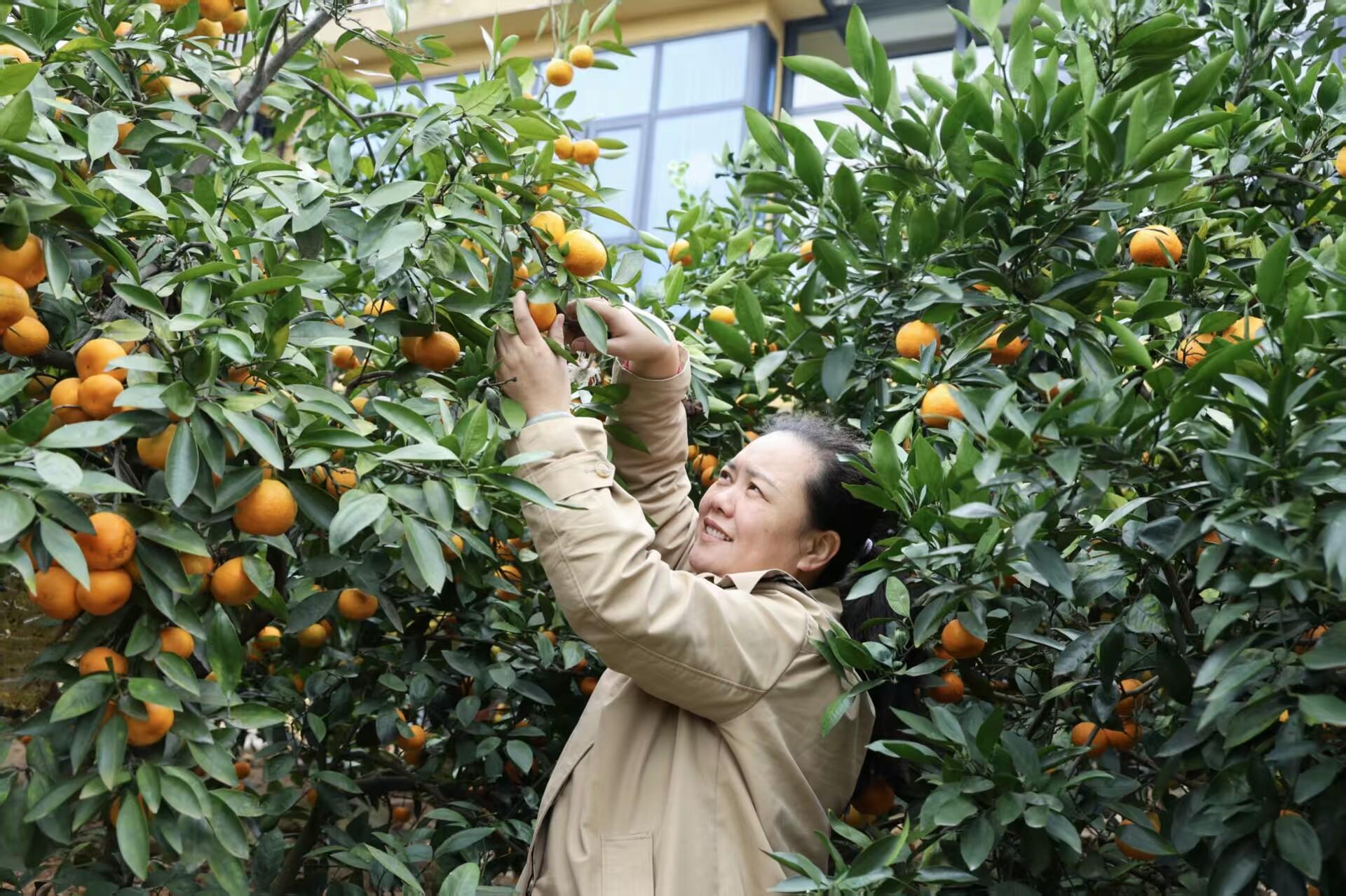 “果园种植了特早、早熟、大分4号、宫川和由良等多个柑橘品种。”柑橘园负责人尹艳萍介绍,今年柑橘园产量预计可达20余万斤。得益于精细管理,柑橘果肉水分充足、甜度高,口感很好,深受顾客喜爱。目前主要以游客采摘的方式进行销售,同时也预留了一部分果子在年底供应市场。