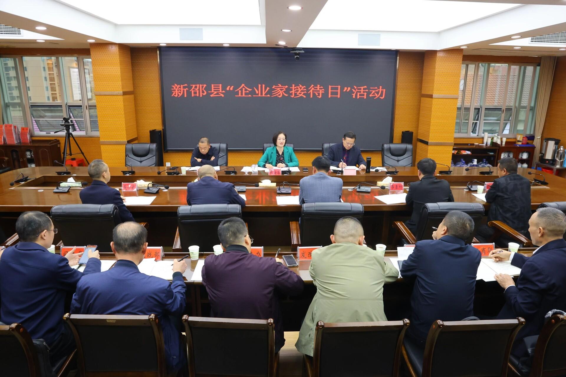 11月4日下午,新邵县举行“企业家接待日”活动。县委书记黄海蓉与部分涉农企业家代表面对面座谈,现场听取企业家提出的意见建议,协调解决企业发展难题,全力推动涉农企业提质增效,助力县域农业高质量发展。县委副书记、统战部部长王振波主持会议。