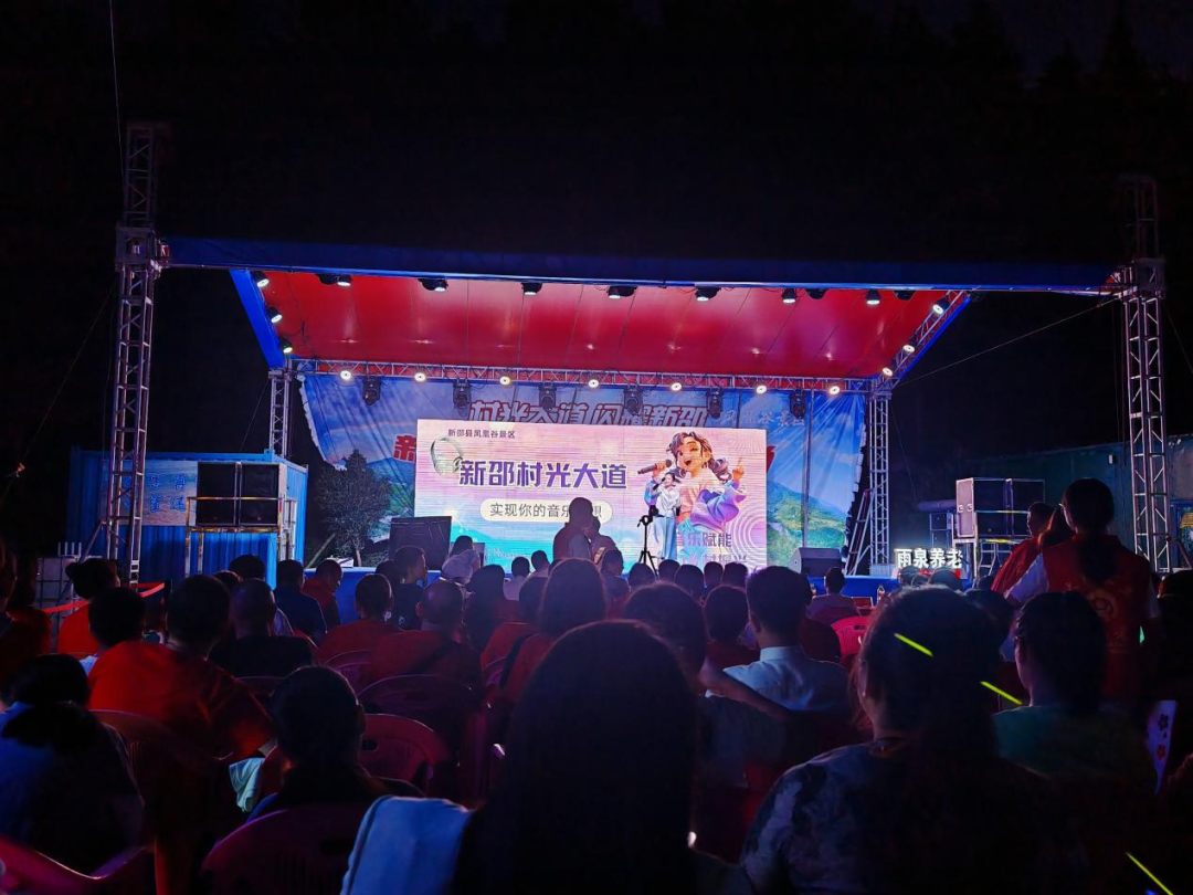 国庆期间,作为国家 AAA 级景区的凤凰谷凭借特色夜间活动,成功跃升为新邵县新兴夜间消费核心载体,成为县域文旅市场的 “夜间明珠”。其精心打造的 “村光大道” 比赛开启后,热度持续飙升,不仅延续了此前广受好评的赛事常态化运营模式,更在假日期间升级互动形式——开演的赛事现场,既邀请本地村民登台展示山歌又鼓励游客自发参与歌曲演唱、民俗舞蹈等互动环节,村民的 “土味” 活力与游客的热情参与碰撞出独特火花,真正实现 “文旅搭台、全民共享”。赛中穿插景区特色推介,将玻璃漂流、七彩滑道等日间游乐项目二次进行推广,而日间的玻璃漂流穿梭于青山绿水间,游客在尖叫声中感受速度与自然的交融;七彩滑道如同山间彩虹,成为亲子家庭拍照打卡的热门点位,更有骆驼旅拍骑行等游乐项目,这种“日间游乐 + 夜间赛事”的全时体验链,彻底打破了传统景区“白天热闹、夜晚沉寂”的运营困境。据统计,国庆期间凤凰谷景区夜间客流真正实现了从“流量”到“留量”的转化,为县域夜间文旅经济发展提供了鲜活范本。