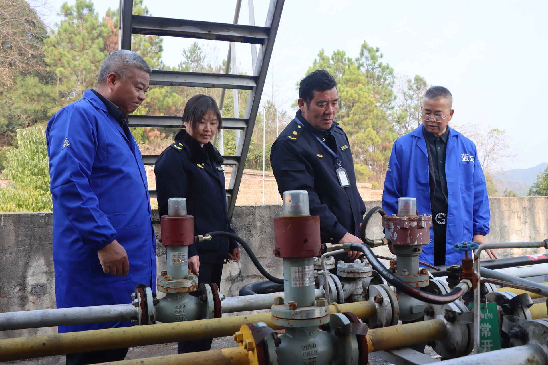 检查组首先对燃气企业进行突击检查。在新邵县蓝天气体有限公司,执法人员深入充装台、压缩机房、储罐区等重点区域,细致检查设备运行、安全管理和操作规范落实情况,督促企业严格落实主体责任,严守安全生产红线。