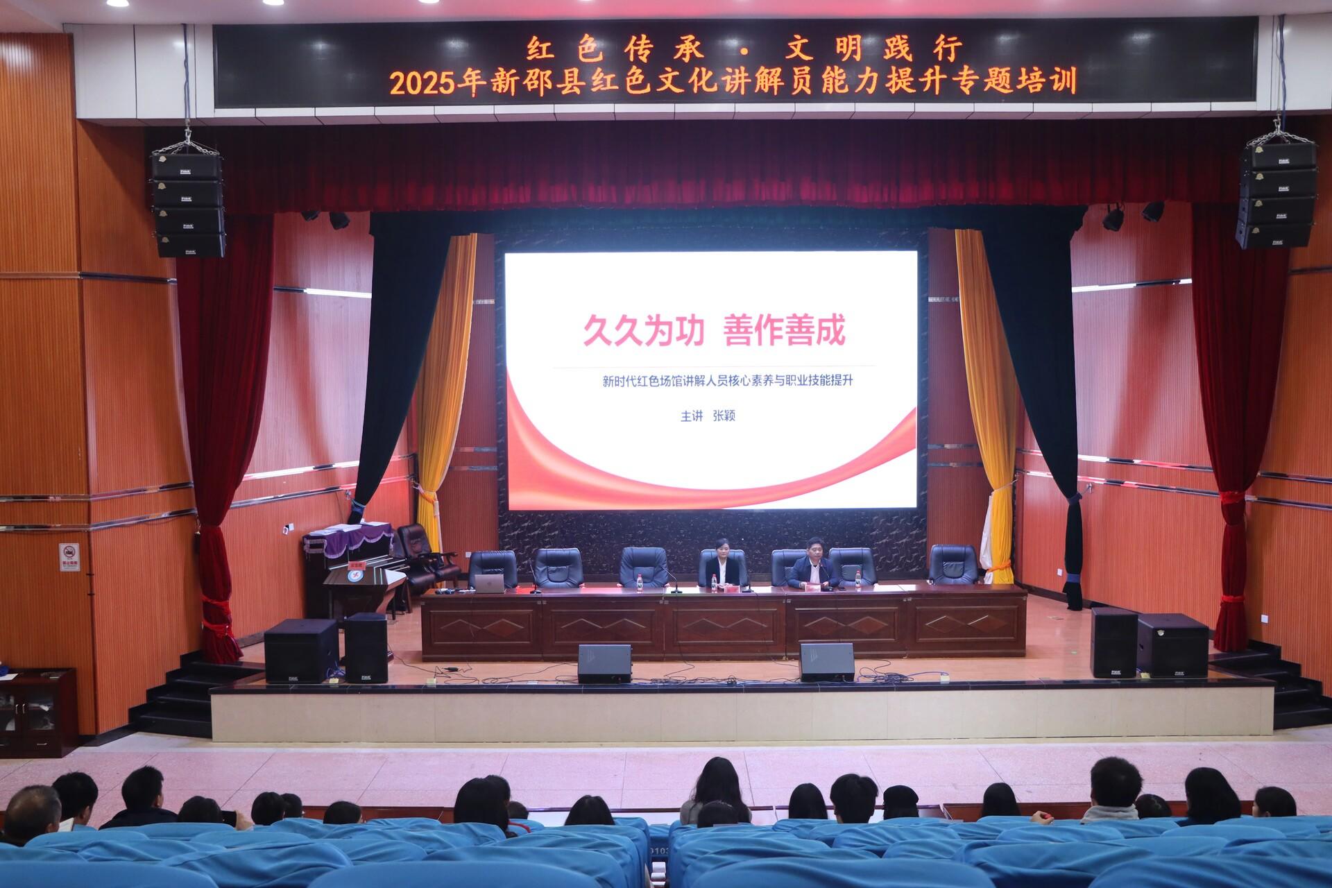同日,在新邵县思源学校,一场以“红色传承 文明践行”为主题的红色文化讲解员能力提升专题培训也同步开展,吸引了全县各条战线的50余名专职讲解员、导游及志愿者参加学习。培训中,湖南第一师范学院红色教育培训学院副院长、毛泽东与第一师范纪念馆副馆长张颖,围绕“成为一名优秀的讲解员”“打造一场精彩的讲解”“拓宽讲解工作的边界”等三大模块展开授课。毛泽东与第一师范纪念馆宣传教育办公室主任邹磊就宣讲员职业形象建设作了系统培训。