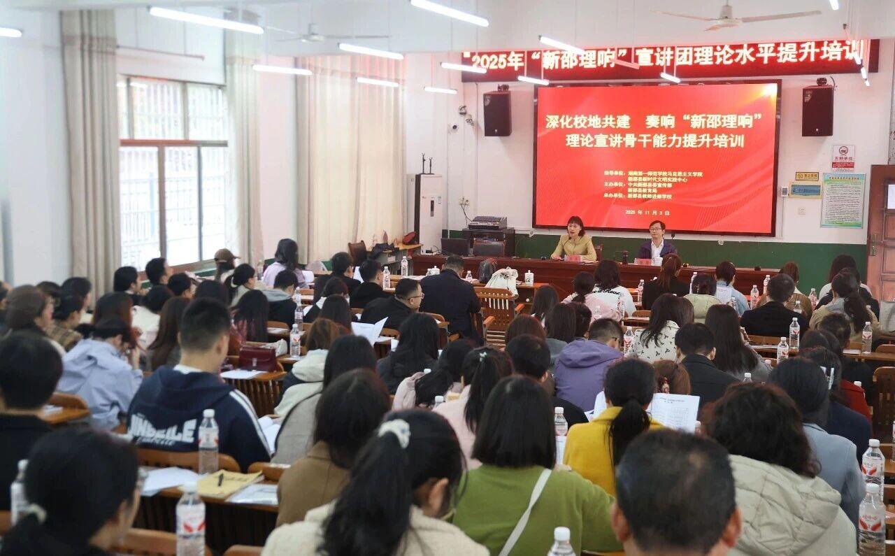 本次培训由湖南第一师范马克思主义学院与新邵县新时代文明实践中心联合主办,以“深化校地共建 奏响‘新邵理响’”为主题,吸引了80余名理论宣讲骨干和新时代文明实践中心、所(站)的负责同志参加。