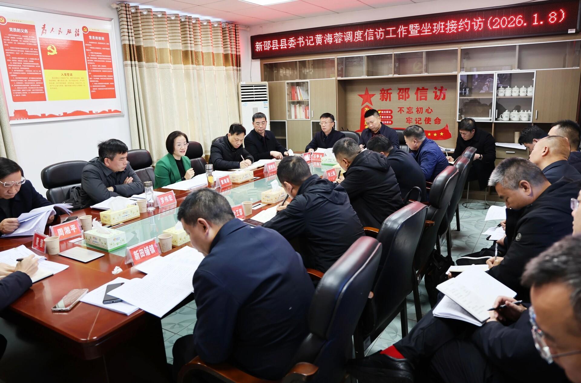 1月8日上午,新邵县委书记黄海蓉赴县信访局专题调度信访工作,并开展坐班接约访活动。她强调,要深入学习贯彻习近平总书记关于加强和改进人民信访工作的重要思想,始终坚持以人民为中心,用心用情用力解决好群众急难愁盼问题,持续提升人民群众的幸福感、获得感,全力维护全县社会大局和谐稳定。县领导曾律玮、罗伟宏、蒋命贤、周湘平、石争光、杨香勇及相关乡镇、部门负责人参加会议。