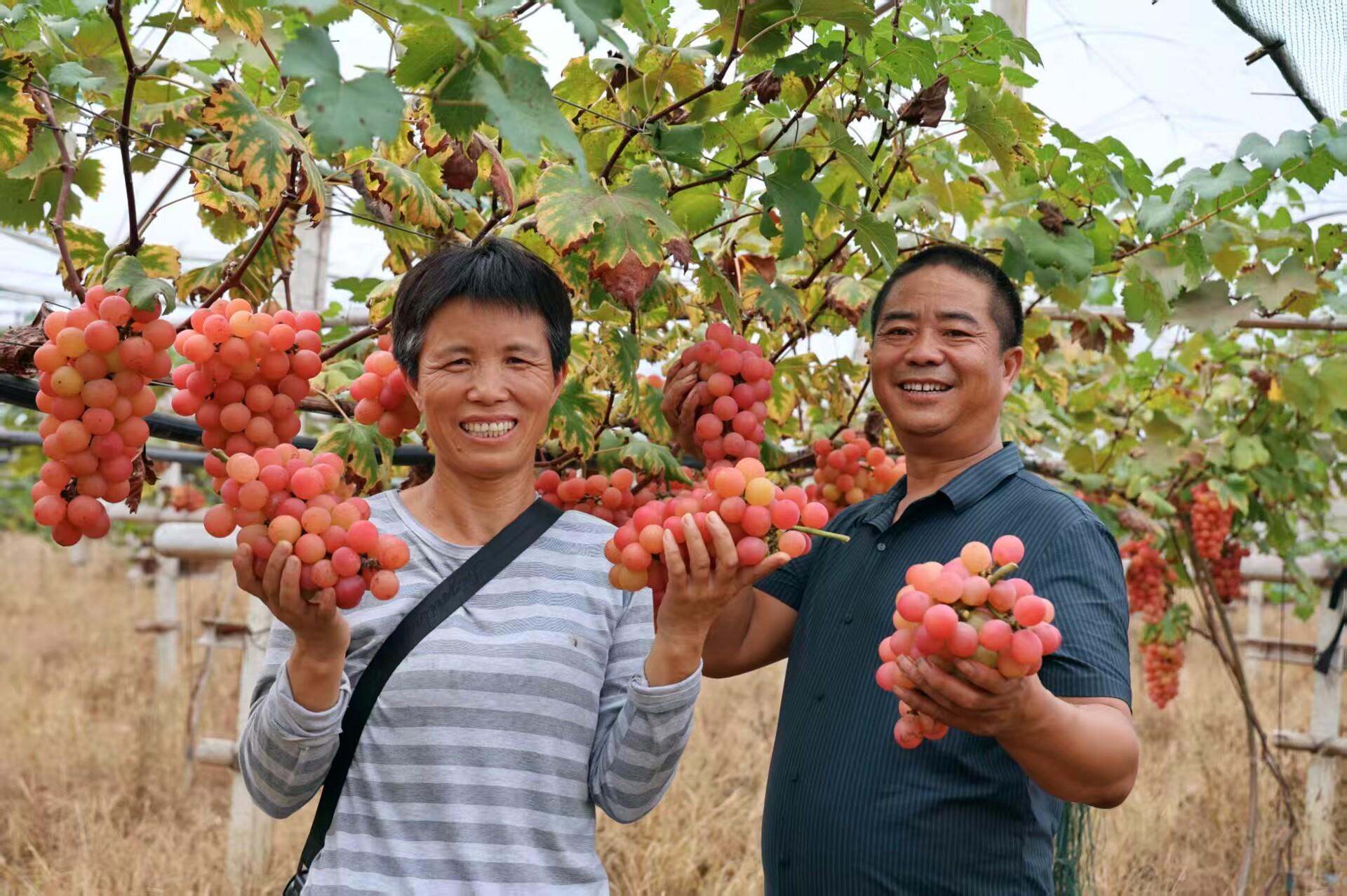 种植户黄论育正与家人一起采摘成熟的葡萄。他介绍,这是合作社今年首次挂果的新品种,因颗粒大、甜度高、风味佳,一上市就备受青睐。为保障葡萄品质,果园严格控制亩产量在3000斤左右,并在冬季施用有机肥,坚持人工除草。此外,在葡萄接近成熟时还会进行套袋处理,以有效防止鸟害和虫害。