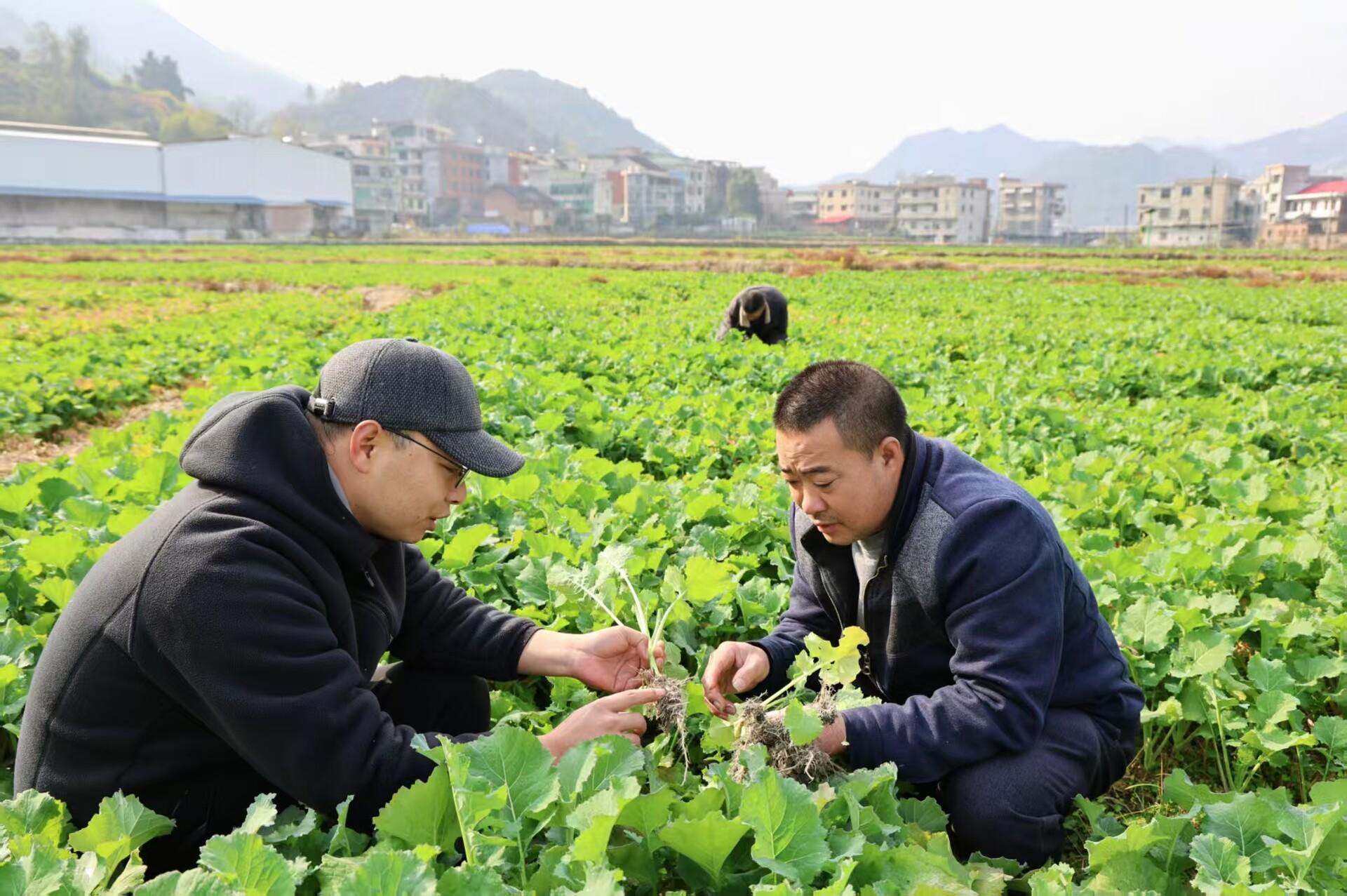 12月25日,在龙溪铺镇双桥村,连片的油菜绿意盎然、长势喜人。农技人员忙碌地穿梭于油菜田间,他们一边观察油菜长势,一边指导村民如何根据苗情进行分类施策,应对低温天气的方法,科学做好油菜冬季田管工作,提高油菜的抗寒能力。