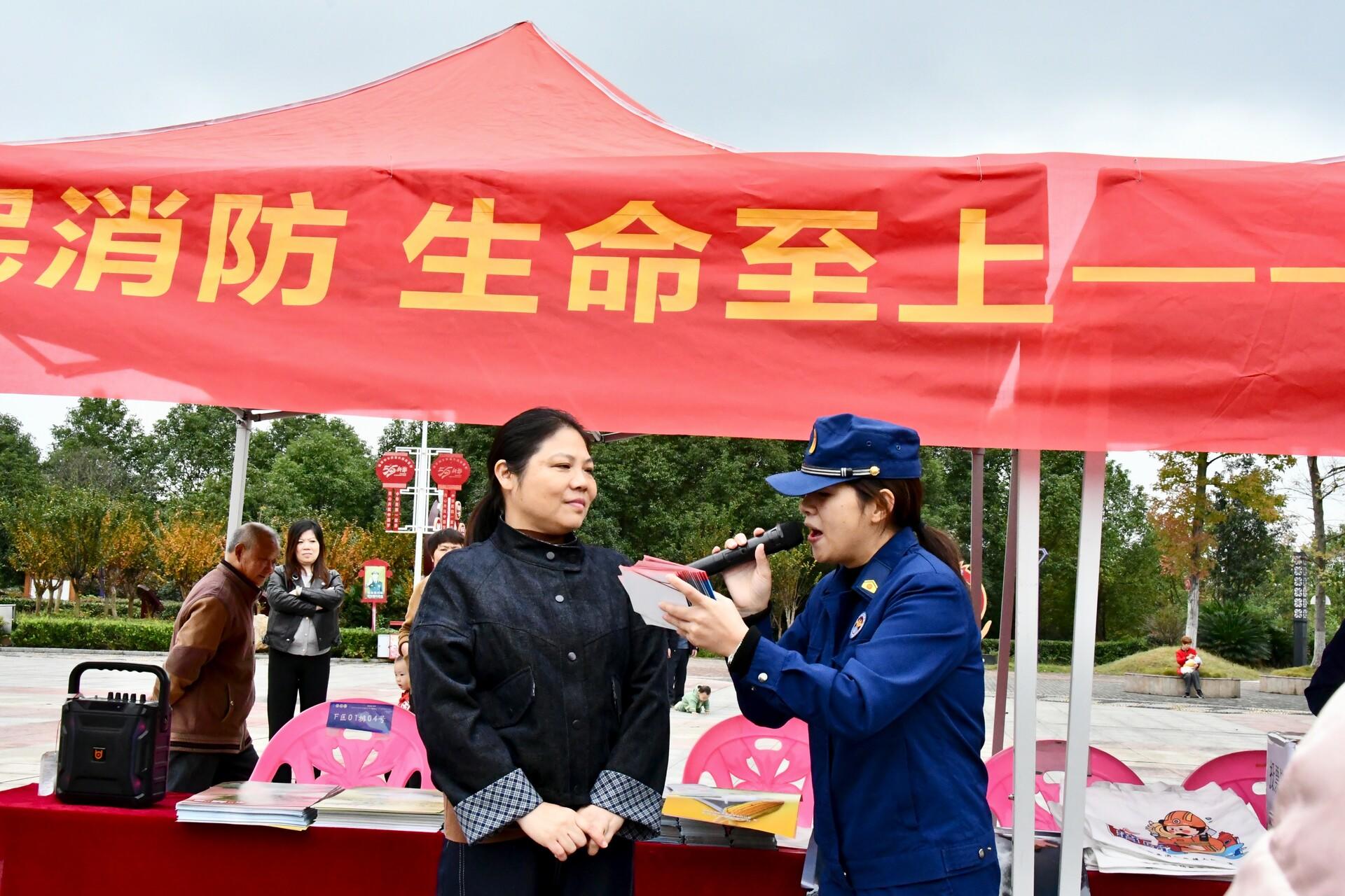 11月11日,新邵县法治文化广场人头攒动、气氛热烈。新邵县消防救援大队在此开展“119”宣传月主题宣传活动,以“全民消防,生命至上——安全用火用电”为核心主题,通过沉浸式体验、互动式问答等形式,为现场群众送上内容扎实、趣味十足的消防安全“大餐”。活...