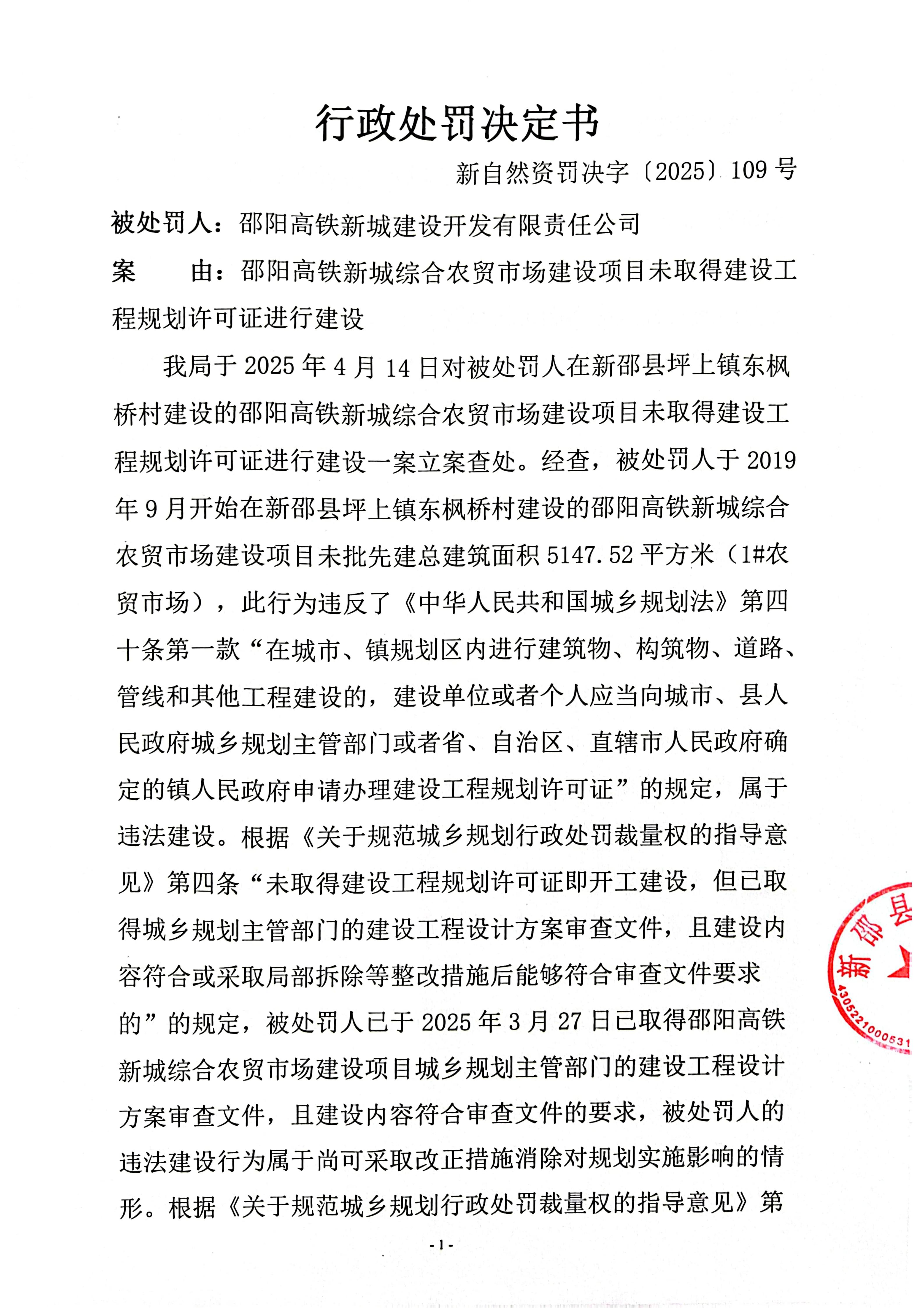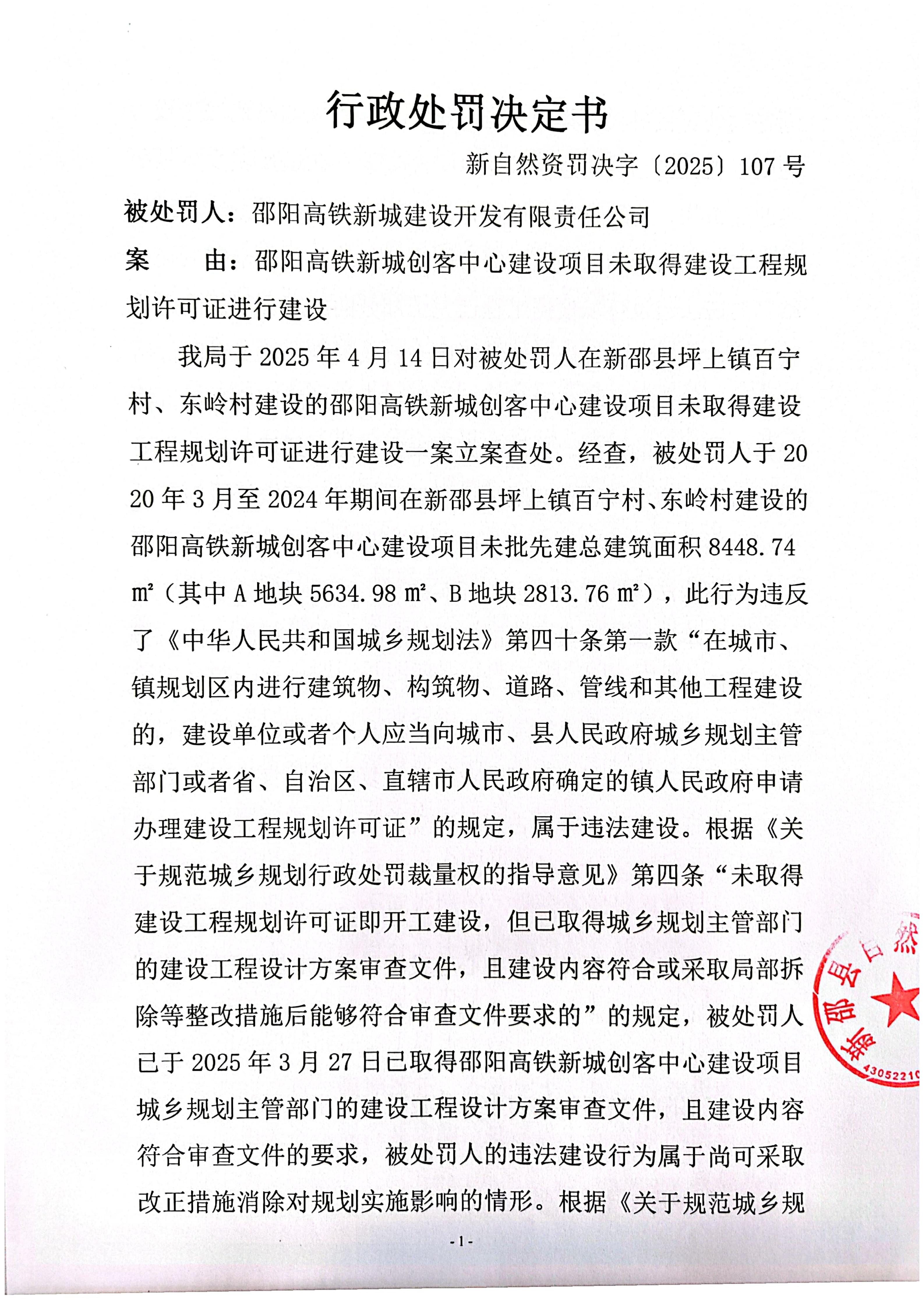 【新邵县自然资源局】行政处罚决定书(新自然资罚决字〔2025〕107号、109号)