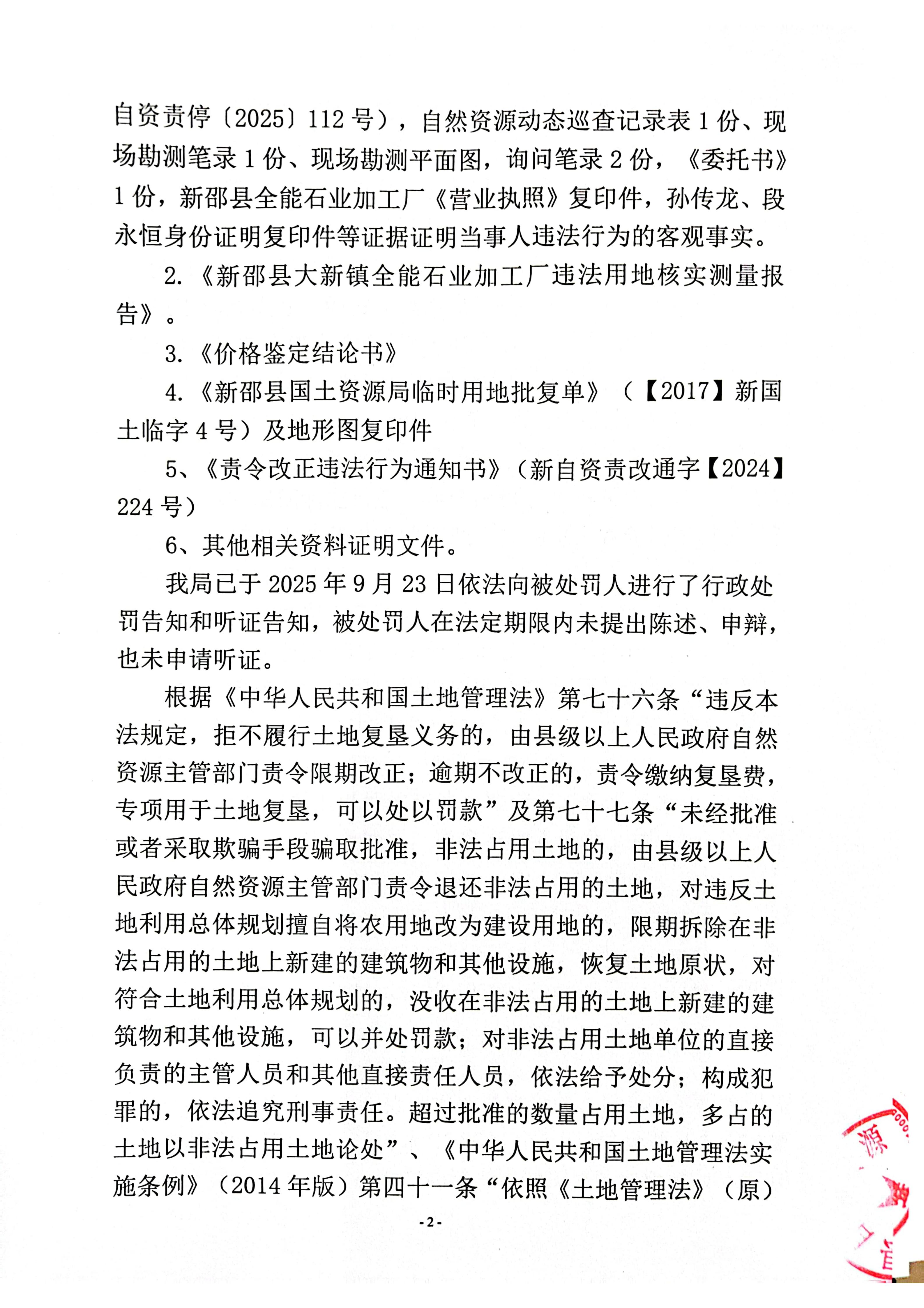 【新邵县自然资源局】行政处罚决定书(新自然资罚决字〔2025〕112号)