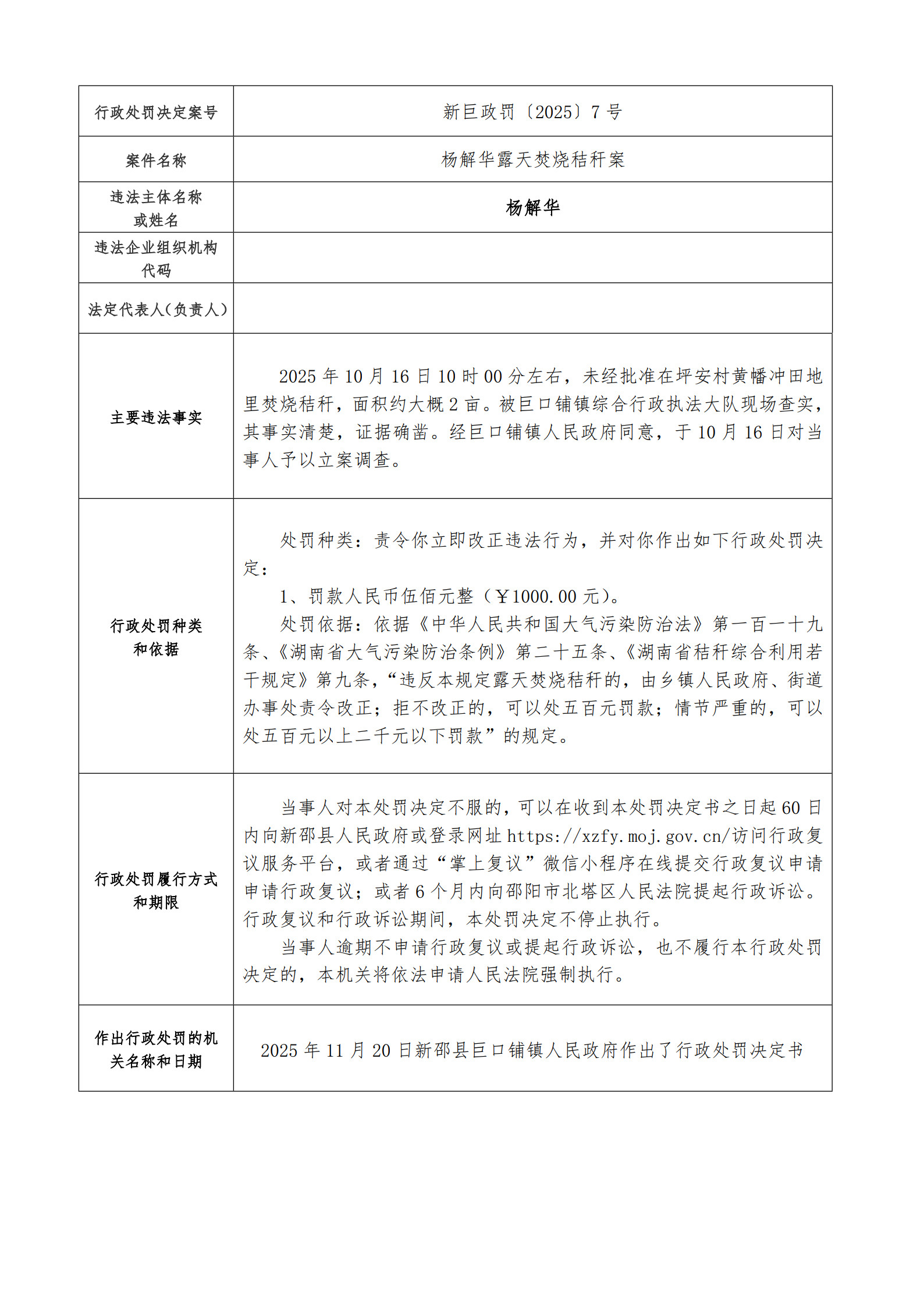 新邵县巨口铺镇人民政府行政处罚决定信息公示(7)